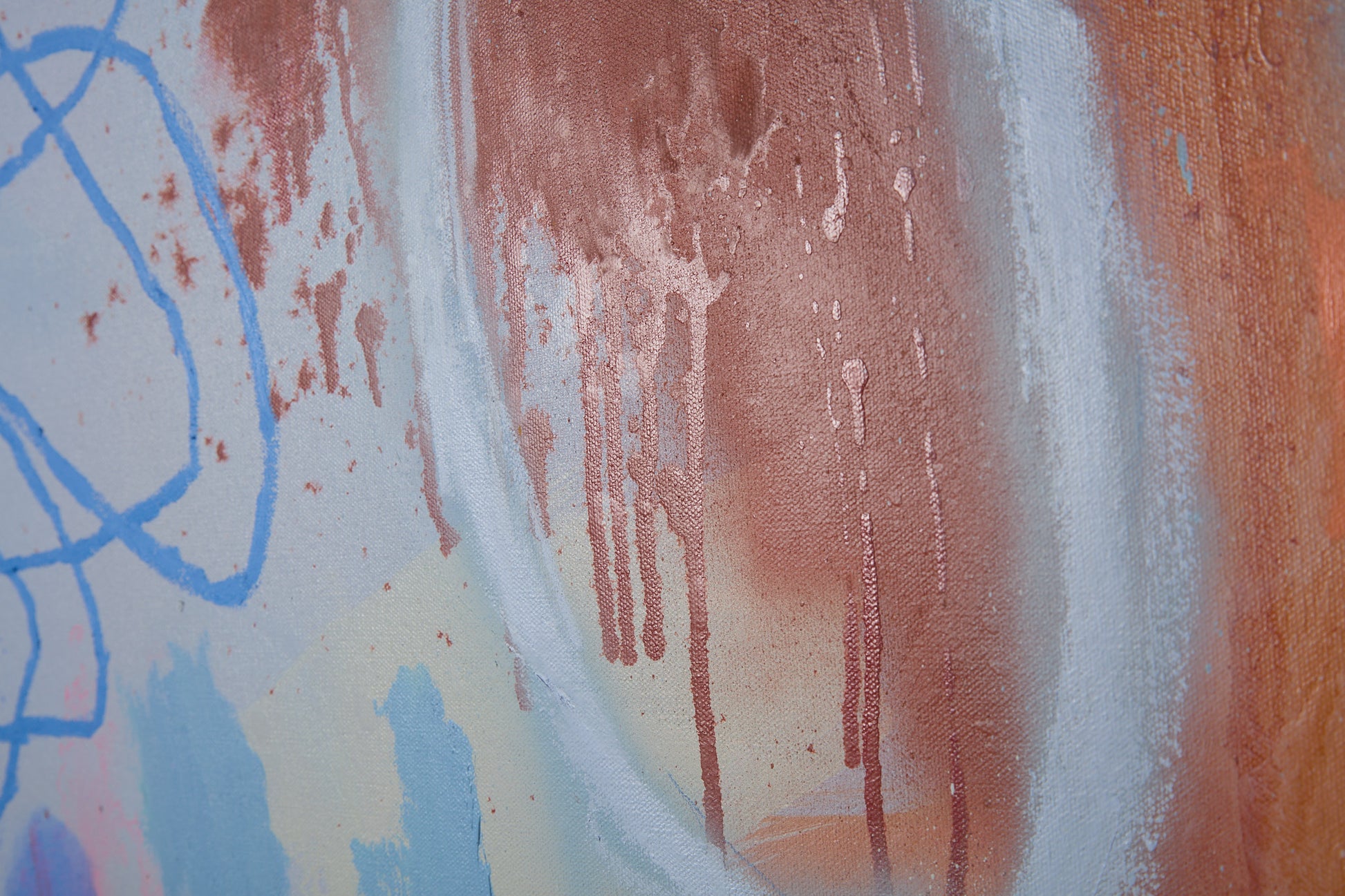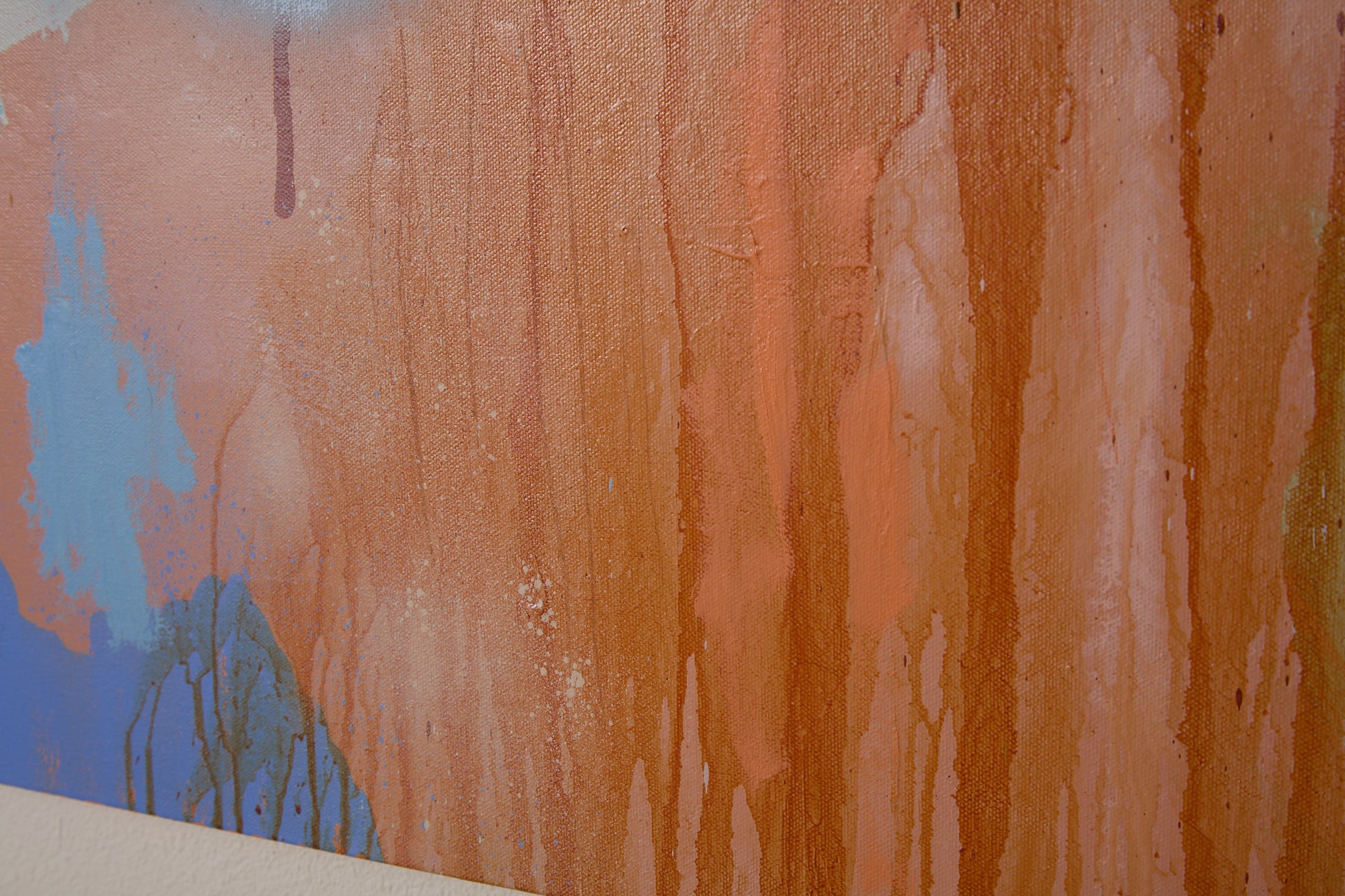 This piece is part of my Autumn Color Collection. The paintings in this collection are influenced by the changing light, changing color, and changing feeling that comes with the start of Fall. You’ll notice a shift toward more neutral and muted tones in many of the pieces, yet the signature vibrancy and bold nature remains intact. Paintings are constructed in layers - moving back and forth between the studio floor and an easel - to create all the drips, splashes, texture and detail.