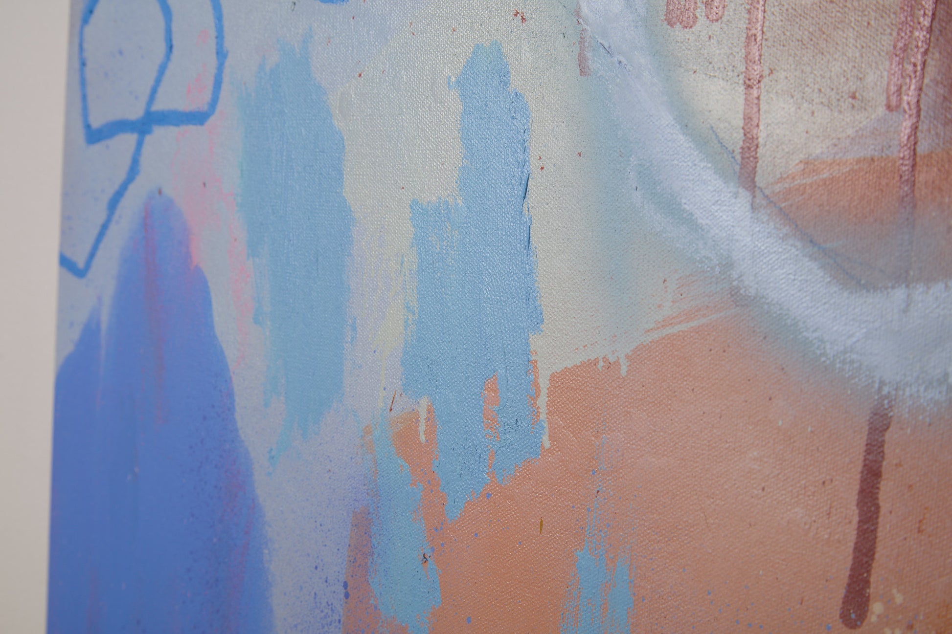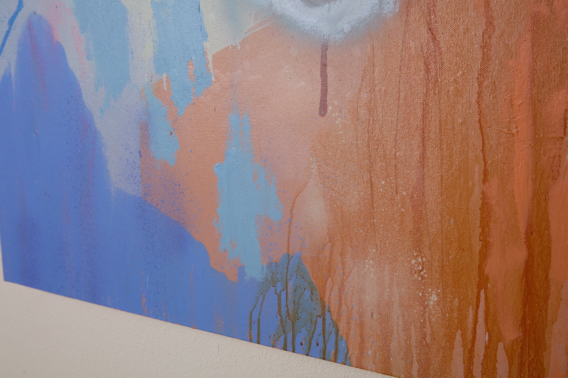 Original mixed media painting on stretched canvas, framed in solid Douglas Fir. Media includes acrylic, oil, spray paint, colored pencil. Due to size, this piece does not come framed, but If collected locally I'm happy to frame for an additional fee. Ships rolled and requires re-stretching once received by the collector.