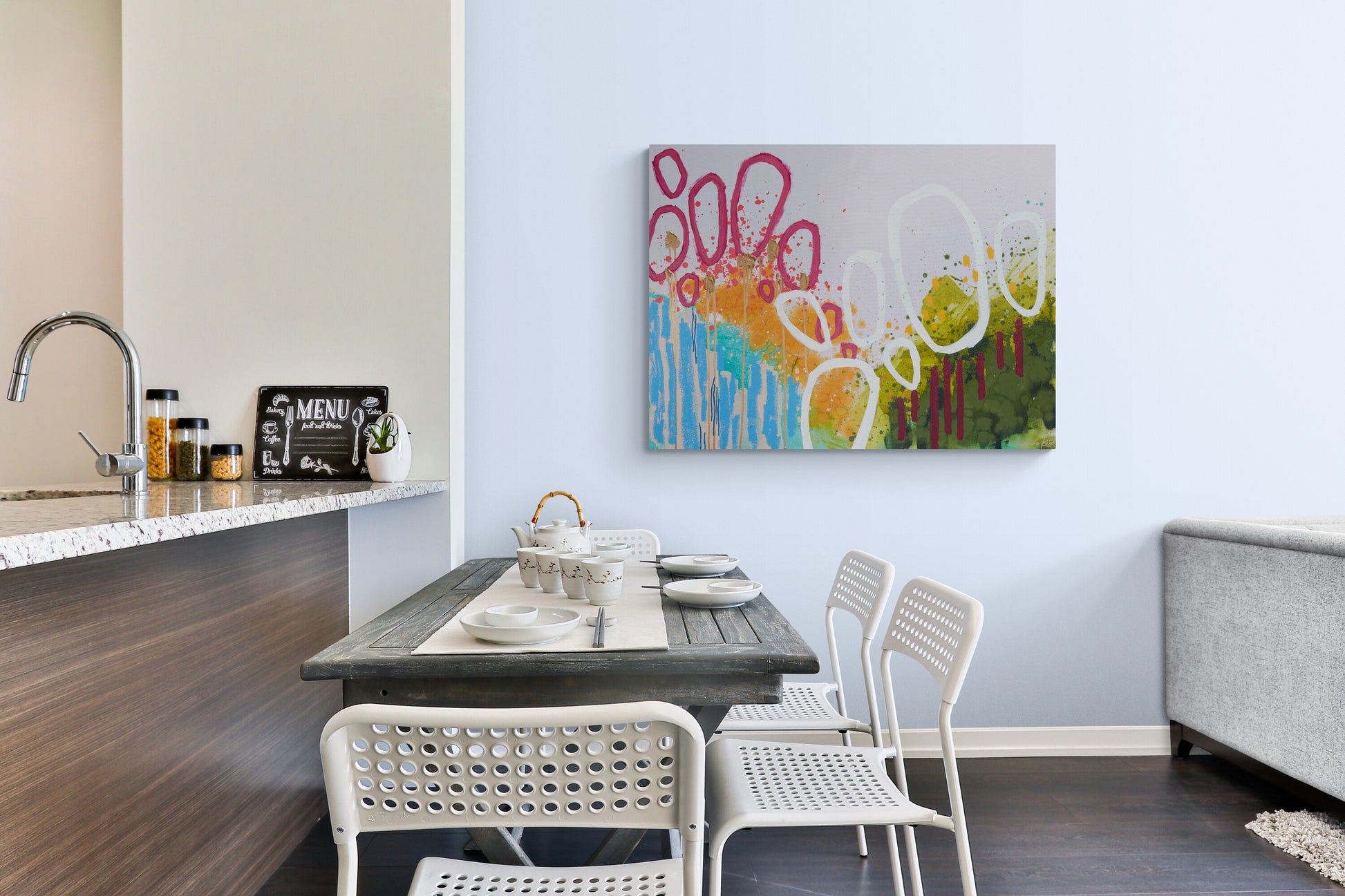 Printed on professional canvas with archival inks, and stretched on 1.5" thick bars just like my originals, you'd have to get real close to realize that they are prints. Print design is reflected to wrap around the sides, meaning no blank edges. Stunning detail and color are captured through professional photography of the original painting.