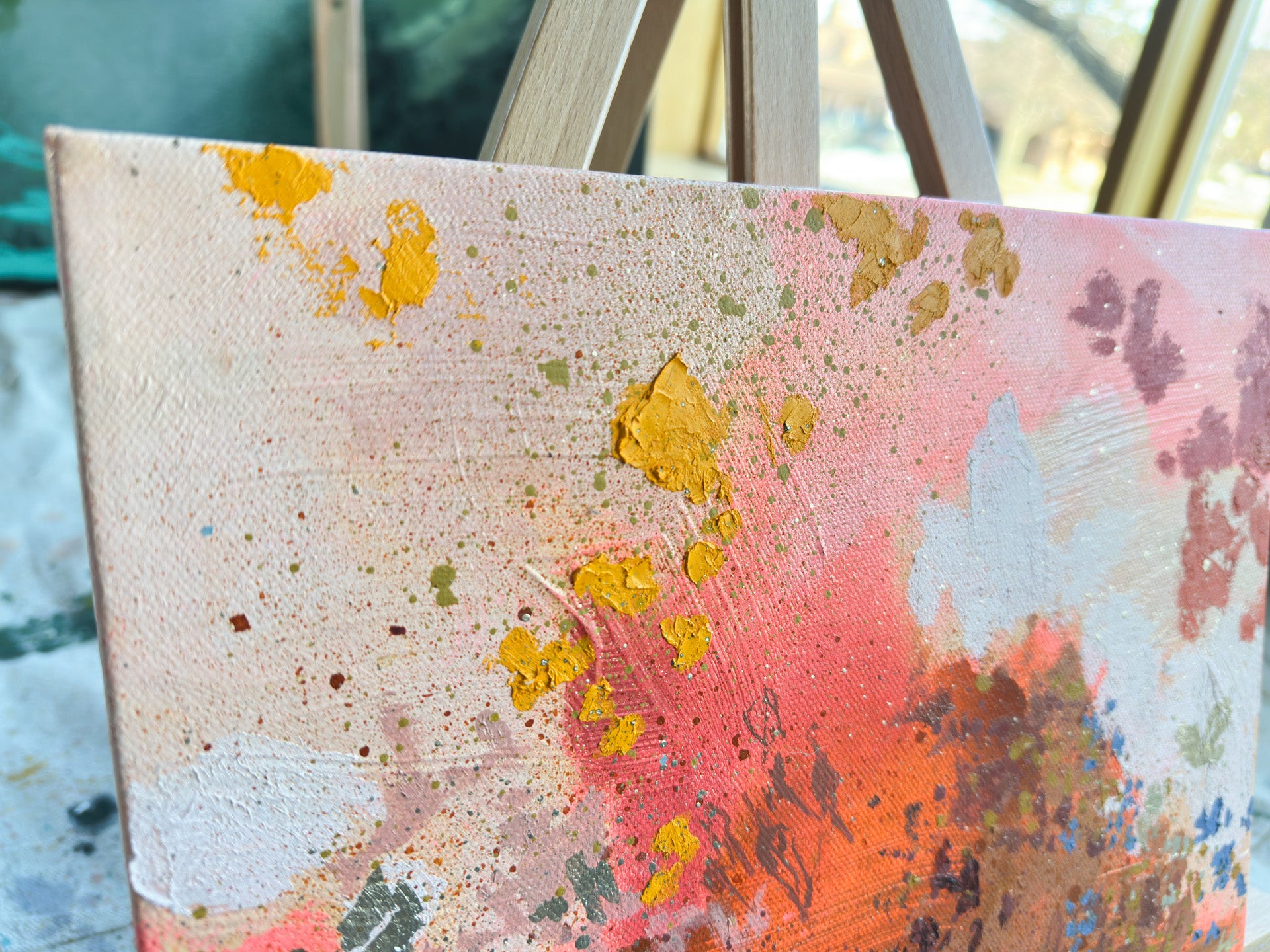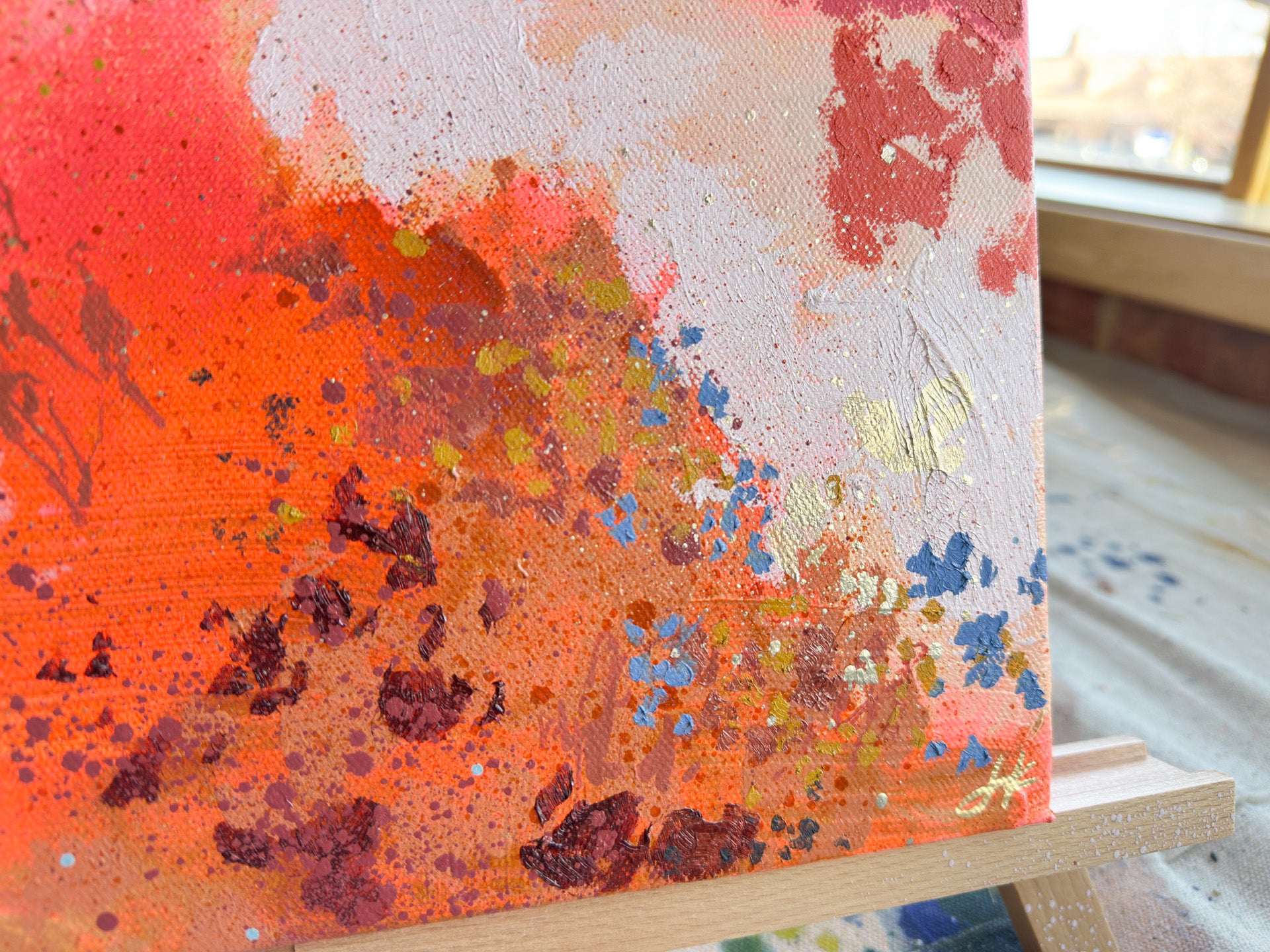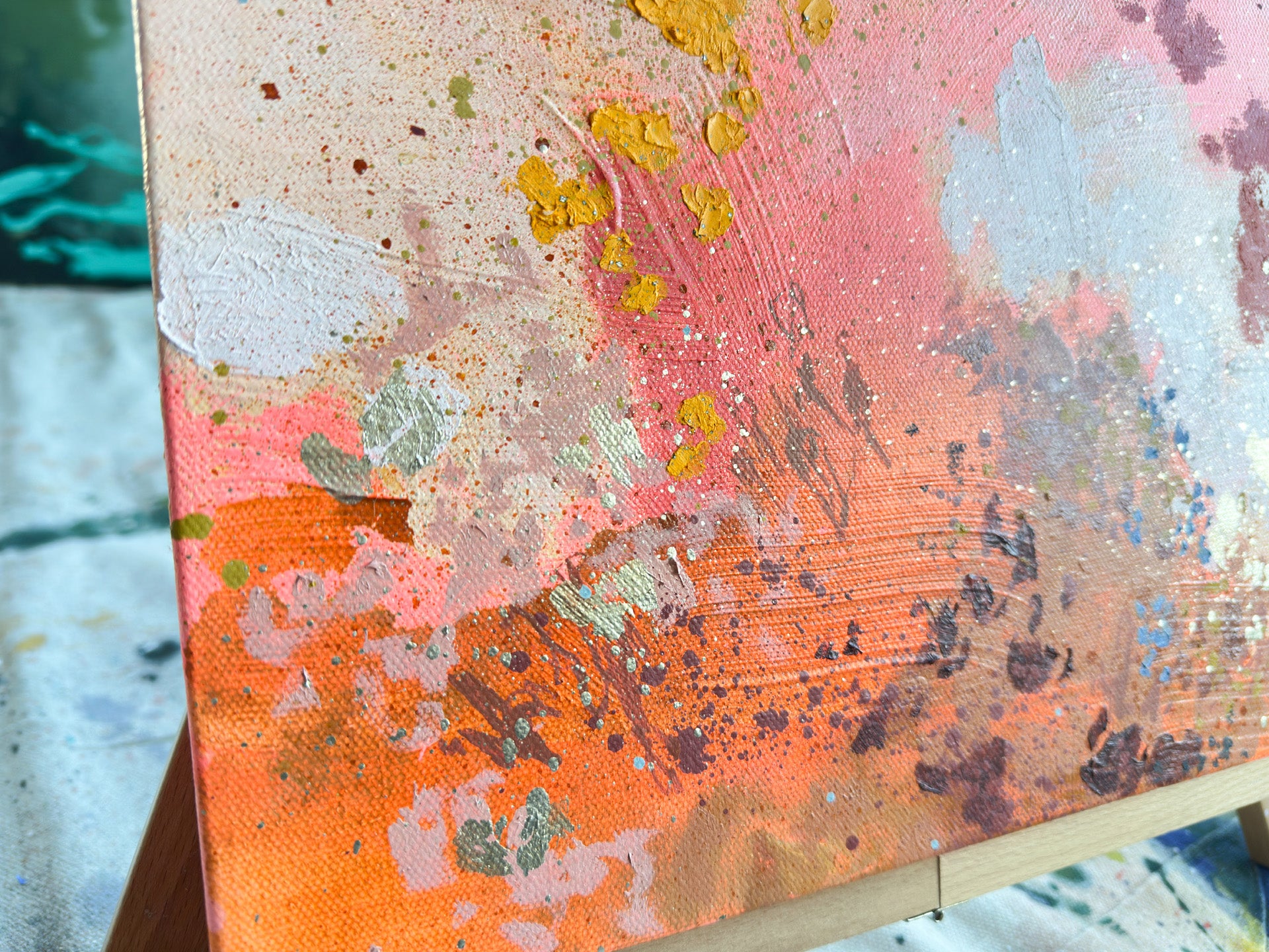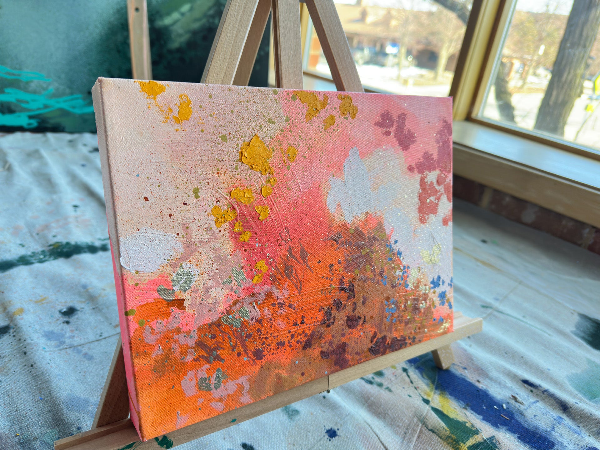 Part of my Reflections body of work, this piece is inspired by my own quiet hours spent with my hands in the dirt, growing things in my garden, wandering along shorelines, and watching the forest change as the light fades at dusk. I painted from the sensory memory of damp earth, moving grasses, and those fleeting moments where nature seems to accept you as part of it. The collection holds that feeling in layers of color, movement, and texture—untamed, intuitive, and deeply grounded in the real world. These pieces invite you to slow down, wander within them, and find your own meaning in the quiet power of the natural world.