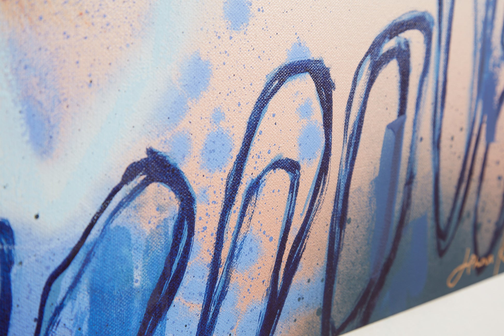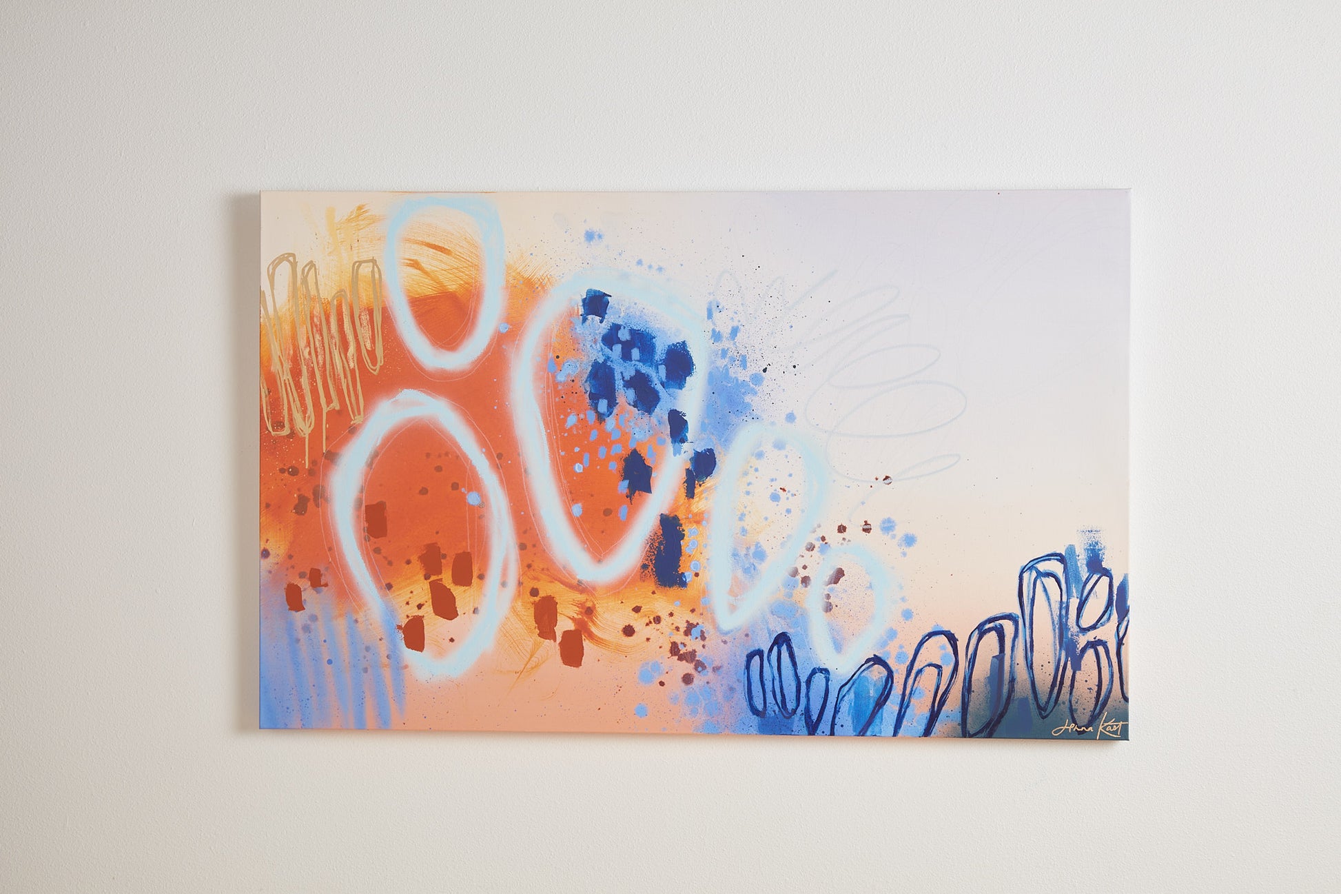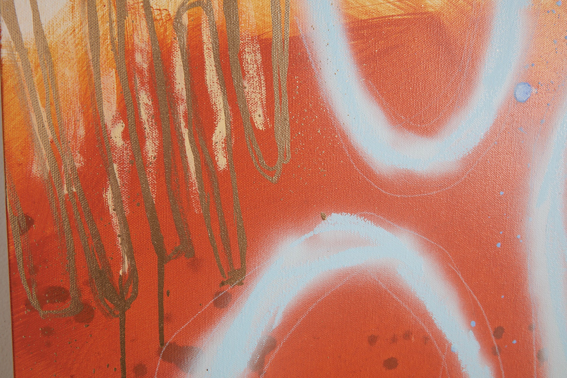 Mixed media original painting on stretched canvas. Media includes acrylic, oil paint stick, spray paint, oil pastel, colored pencil, graphite.