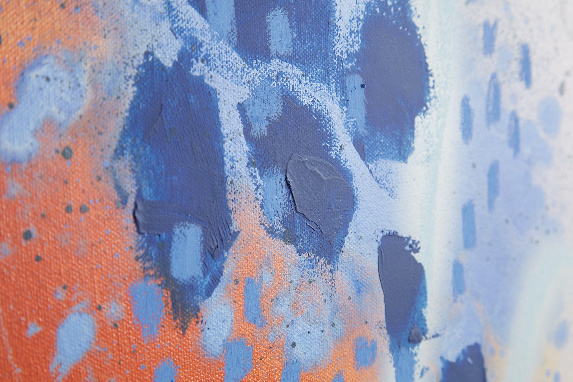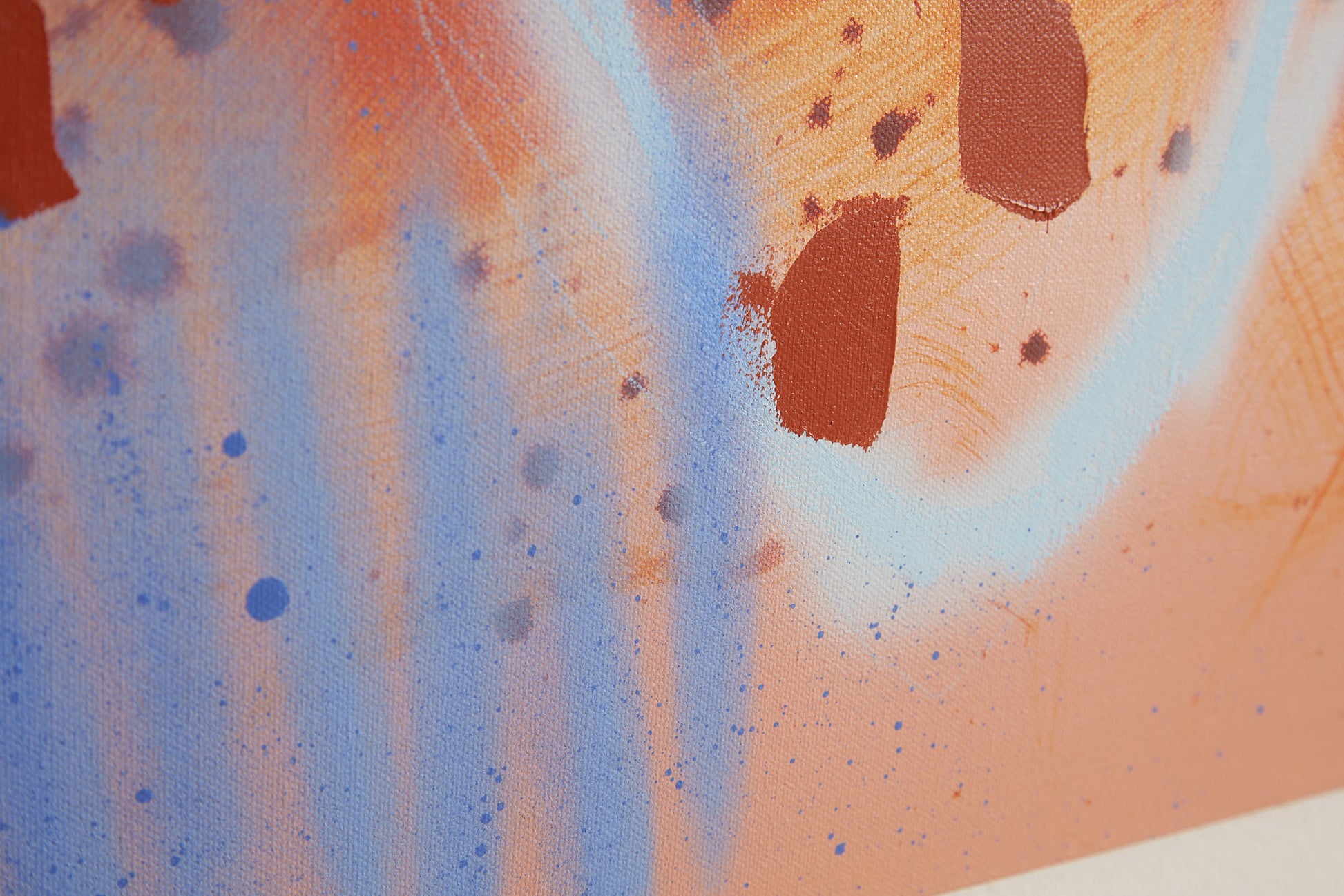 Paintings are constructed in layers - moving back and forth between the studio floor and an easel - to create all the drips, splashes, texture and detail.