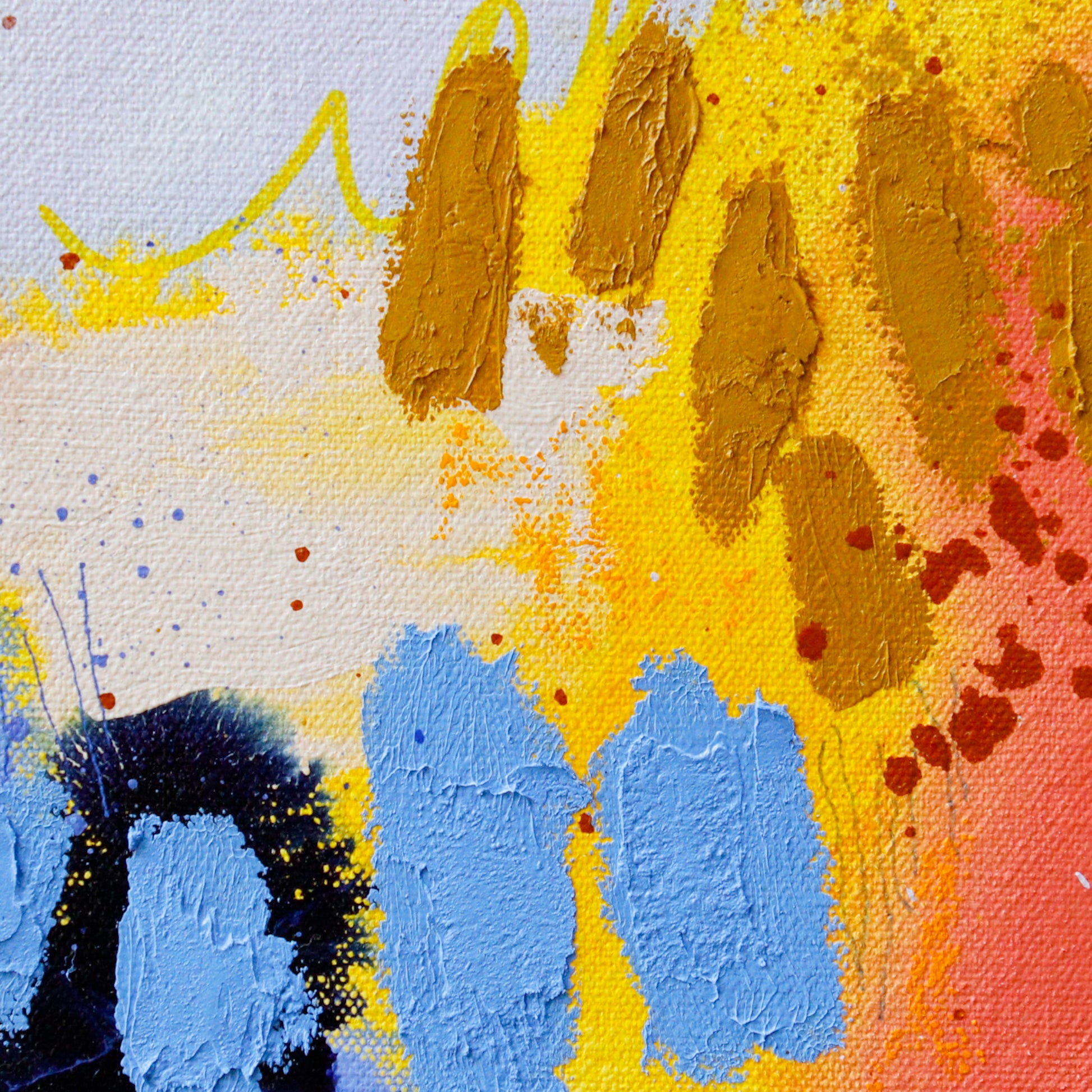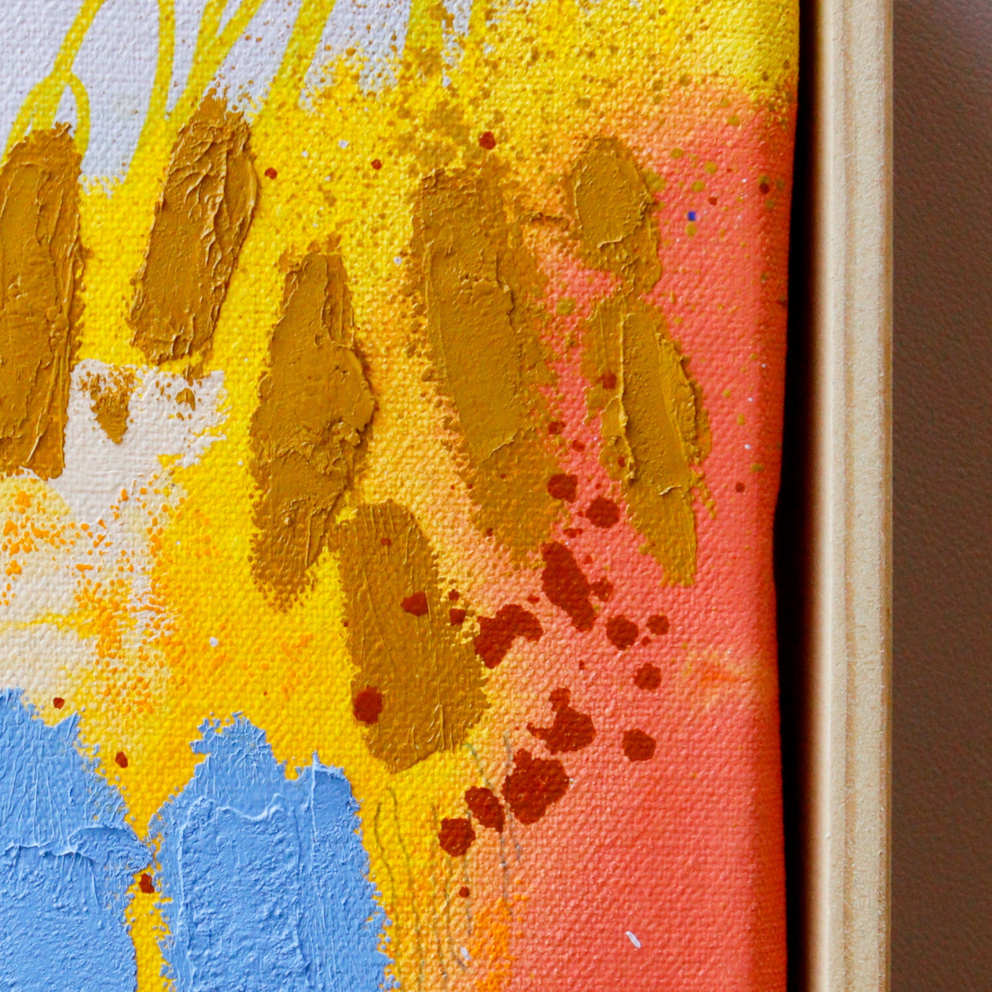 Original Mixed Media painting on stretched canvas. Acrylic, spray paint, ink and oil stick. Hand-built Douglas Fir float frame. Framed size: 7x7x2.5 inches (18x18x6 cm).