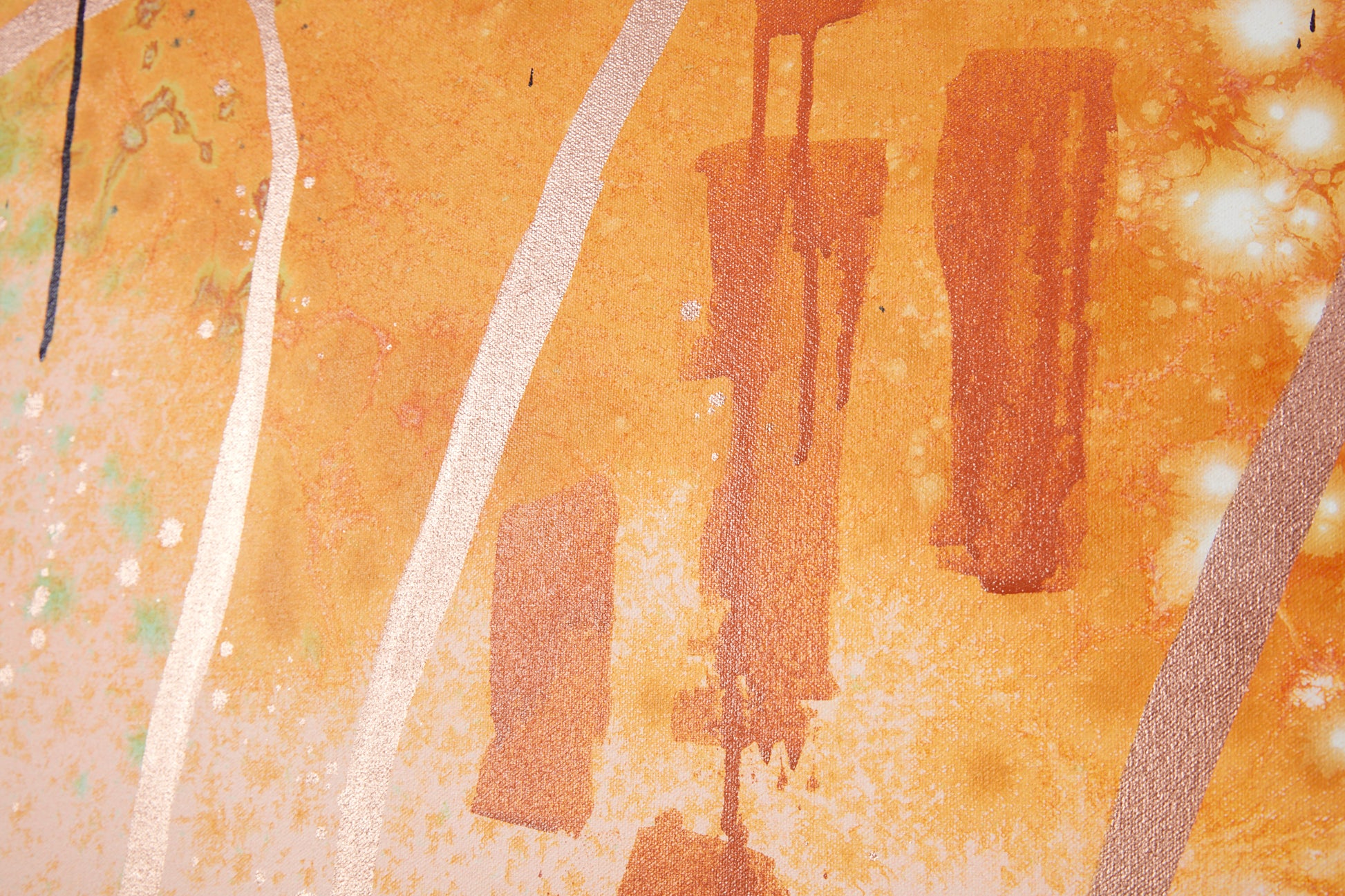 Organic forms intertwine with geometric shapes, creating a sense of movement and energy that draws you deeper into the artwork. Soft curves intertwine with stark lines, each element playing its part in the composition's intricate choreography.