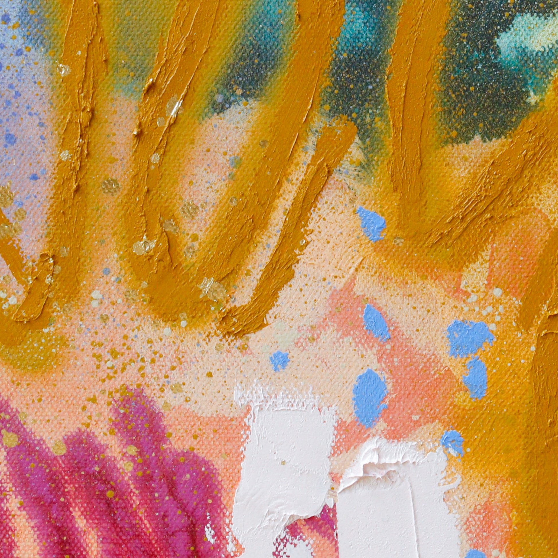 Original Mixed Media painting on stretched canvas. Acrylic, spray paint, ink and oil stick. Hand-built Douglas Fir strip frame. Framed size: 13x13x1.5 inches (33x33x4 cm).