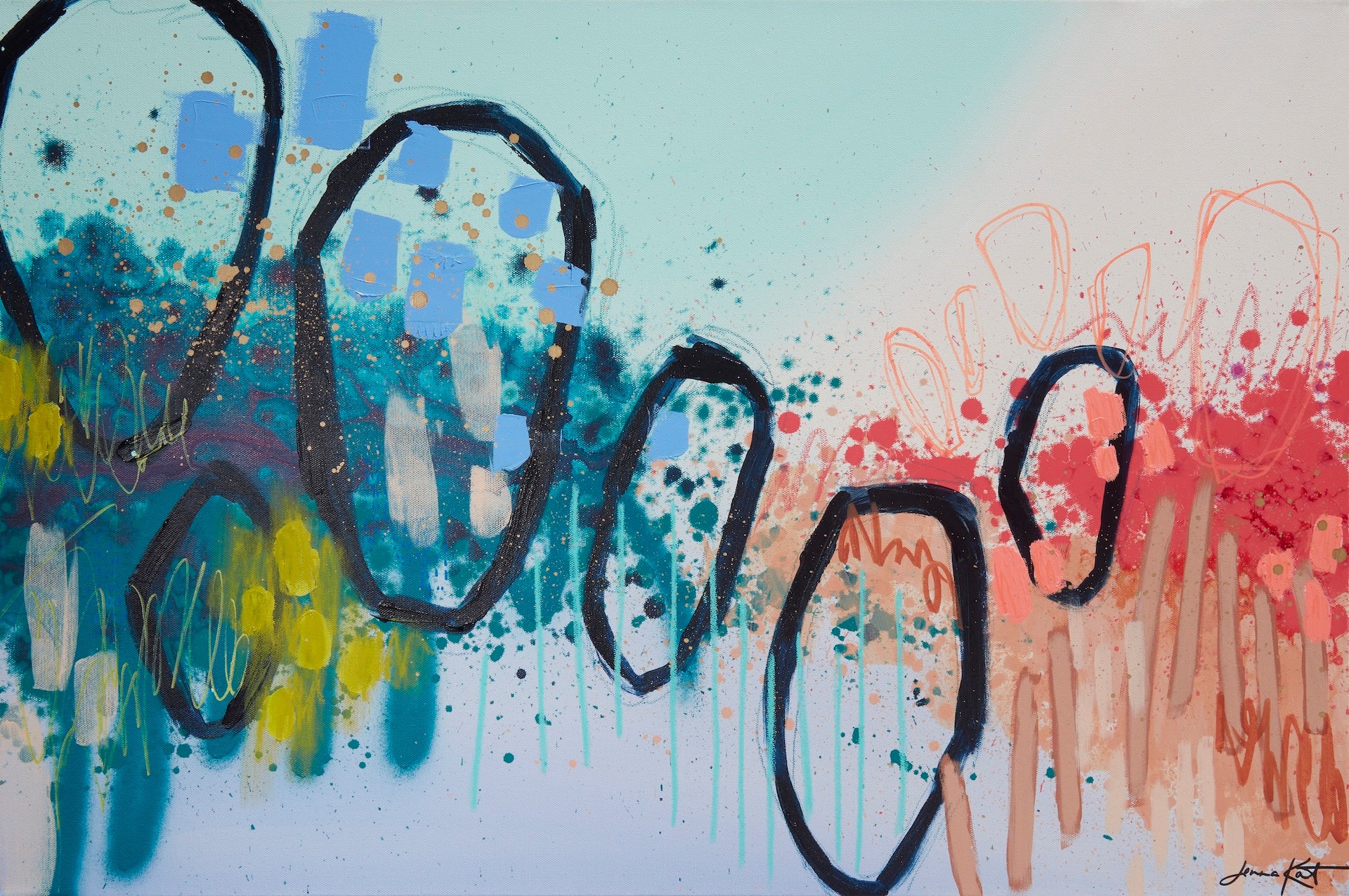 Printed on professional canvas with archival inks, and stretched on 1.5" thick bars just like my originals, you'd have to get real close to realize that they are prints. Print design is reflected to wrap around the sides, meaning no blank edges. Stunning detail and color are captured through professional photography of the original painting.